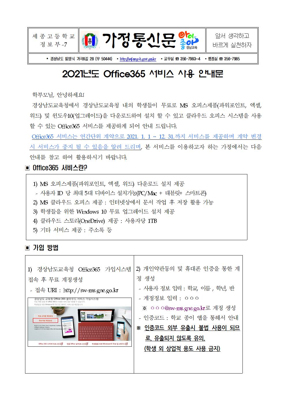 2021년도 Office365 서비스 사용 안내문