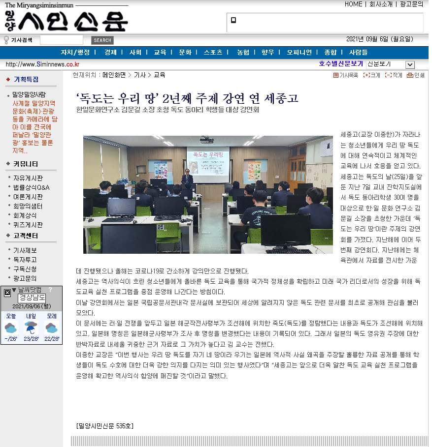 "독도는 우리 땅" 2년째 강연회