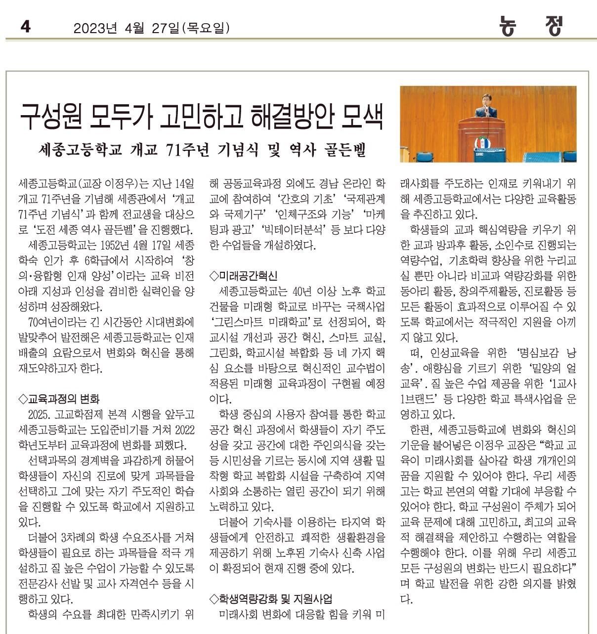 세종고등학교 개교 71주년 기념식 및 역사 골든벨