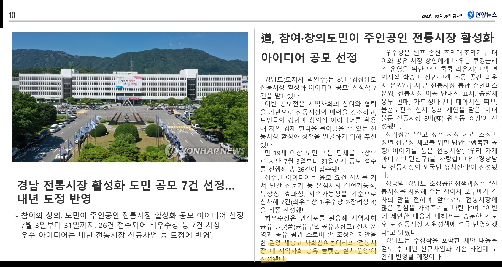 [기사] 전통시장 활성화 공모전 최우수상(SJCEF)_연합뉴스.jpg