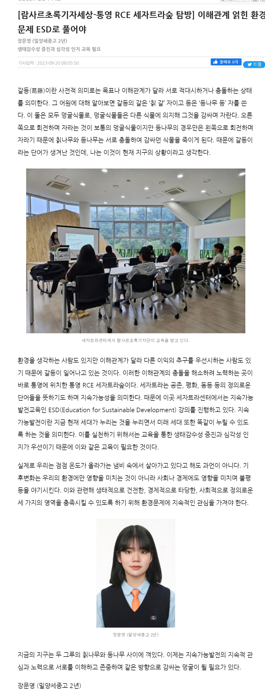[람사르초록기자세상-통영 RCE 세자트라숲 탐방] 이해관계 얽힌 환경문제 ESD로 풀어야